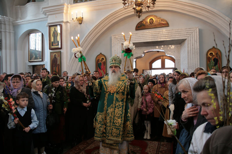 11 апреля 2009 года. Вечером, в канун праздника Входа Господня в Иерусалим, Митрополит Минский и Слуцкий Филарет, Патриарший Экзарх всея Беларуси совершил всенощное бдение в Минском Свято-Духовом кафедральном соборе.