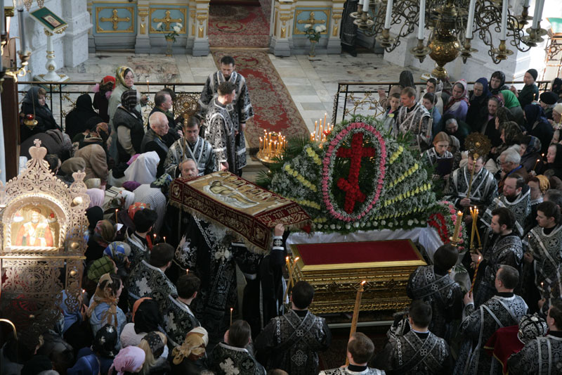 17 апреля 2009 года. Страстная седмица. Великая Пятница. Службу Вечерни, на которой совершается вынос святой Плащаницы, возглавил в 14:00 в Свято-Духовом кафедральном соборе Минска Высокопреосвященнейший Митрополит Филарет. Подробнее