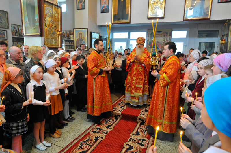 22 апреля 2009 года. Среда Светлой седмицы. Высокопреосвященнейший Митрополит Филарет возглавил Божественную литургию в домовой церкви в честь святого благоверного князя Александра Невского при воскресной школе Воскресенского собора в городе Борисове.