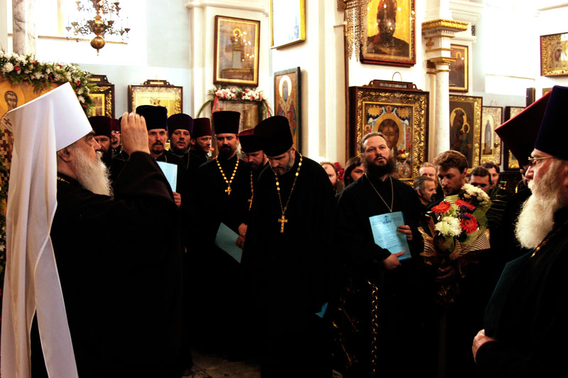 богослужении Владыка Экзарх освятил новопостроенное здание монастыря.
