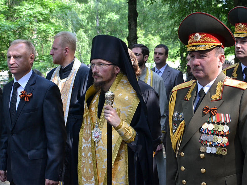 Его Преосвященству сослужили настоятель храма Святой Живоначальной Троицы протоиерей Георгий Тюхлов, иерей Евгений Шваб, настоятель храма в честь святого благоверного князя Дмитрия Донского в/ч Печи иерей Сергий Башкиров, настоятель храма святого Архангела Михаила д. Зембин иерей Андрей Капульцевич.