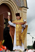 По прибытии крестного хода к цели в притворе строящегося храма был совершен молебен. После молебна Преосвященный Артемий обратился к собравшимся с архипастырским приветственным словом.