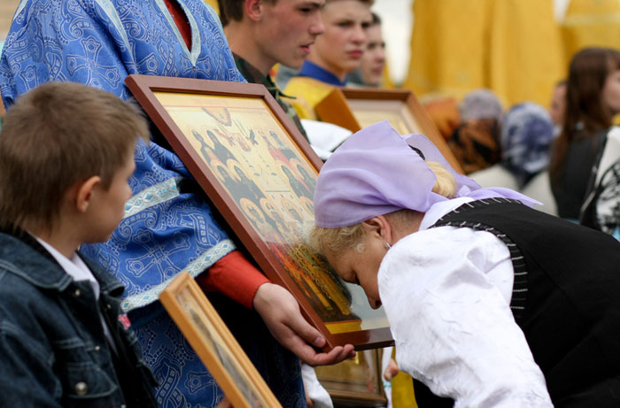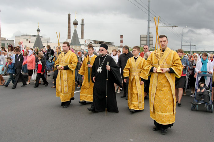 В крестном ходе принимают участие прихожане всех городских храмов во главе с духовенством, а также паломники из других населенных пунктов епархии.
