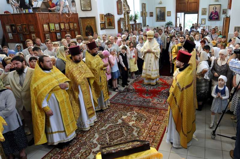Паки поздравляю всех вас с торжеством памяти сих святых и первоверховных апостолов. Особо приветствую в этот святой день отца настоятеля сего Свято-Петро-Павловского прихода, протоиерея Бориса. Вот уже тридцать лет Вы, дорогой отец настоятель, несете подвиг священнослужения. По апостольскому примеру, предстоя у святого Престола, Вы возносите Ваши святые молитвы о вверенной вам пастве, поучая их премудрым евангельским истинам и подавая всем пример и «в слове, и в житии» (1 Тим. 4, 12). И этот прекрасный храм, в котором мы все сегодня молились за Божественной Литургией, является результатом Ваших неутомимых трудов. От всего сердца желаю Вам, отец Борис, и дальнейших духовных сил и телесной крепости, дабы далее совершать возложенное на Вас послушание служения Церкви Христовой! Аминь!
