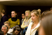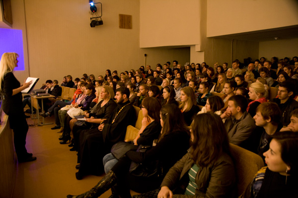 Открытая лекция прошла 26 октября 2011 года в рамках проекта Издательства Белорусского Экзархата (Э) «Сила жизни», цель которого — распространение позитивных ценностей и идеалов среди молодежи. Камерный духовный театр ИБЭ выступил перед учащимися со спектаклем «Черное пальто», в котором заявляется избранная проблема.