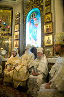 Сегодня, в день Собора Пресвятой Богородицы, мы благодарным сердцем и благодарными усты приносим Ей похвалу, воспевая: «Иже прежде денницы от Отца без матере родивыйся, на земли без отца воплотися днесь из Тебе» Избавитель наш. Воплотился, дабы даровать всем нам радость богоусыновления, предвозвещая предивным Своим Рождеством спасительный акт Искупления, избавивший род человеческий от власти греха и смерти.