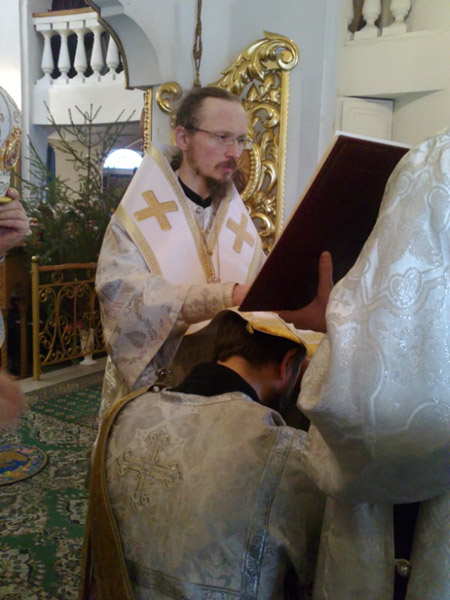 Его Преосвященству сослужил настоятель храма протоиерей Александр Стреха и приглашенное духовенство. За богослужением был хиротонисан во иерея диакон Михаил Романов.