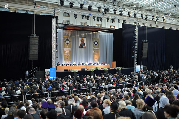 Церемонию открытия и первое пленарное заседание возглавил Святейший Патриарх Московский и всея Руси Кирилл, который обратился к собравшимся со вступительным словом.