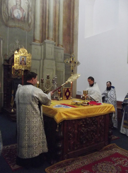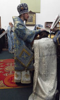 Его Преосвященству сослужила братия монастыря в священном сане. За богослужением диакон Родион Альховик был хиротонисан во иерея, Димитрий Горонин — во диакона.
