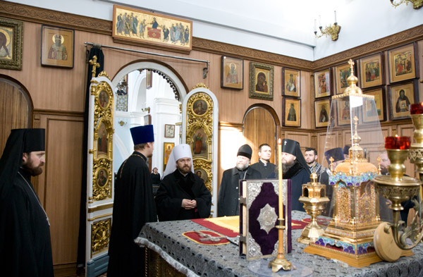 Митрополит Иларион поклонился честным мощам святой праведной княгини Софии Слуцкой, чудотворной Минской иконе Божией Матери и благословил верующих, пришедших на уставное богослужение.