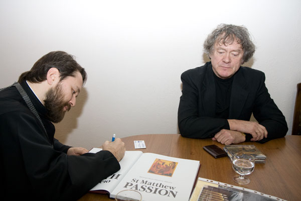 По благословению ректора Института теологии Патриаршего Экзарха всея Беларуси Митрополита Минского и Слуцкого Филарета владыку Илариона встретили первый проректор епископ Бобруйский и Быховский Серафим, начальник Центра международных связей и развития теологического образования Г.А. Довгялло, а также главный дирижер Национального симфонического оркестра Республики Беларусь А.М. Анисимов. Между Его Высокопреосвященством и маэстро Анисимовым состоялась беседа, во время которой обсуждались вопросы диалога в области музыкального творчества.
