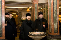 Далее митрополит Иларион посетил приход столичного храма-памятника в честь Всех святых.