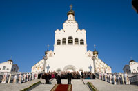 храма Всех святых была совершена панихида по погибшим. Патриарший Экзарх