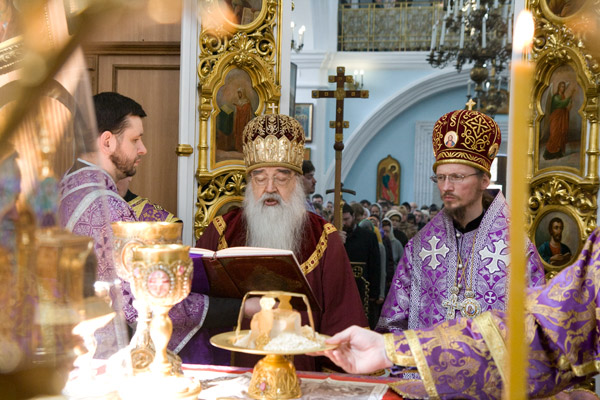 «Мы наблюдаем очами веры нашей и уповаем, что, причастившись Таин Христовых, тем самым мы укрепляемся в вере, в благочестии, в любви ко Господу и к ближним нашим. И дай Бог, чтобы эти оставшиеся часы до Светлой Пасхи Господней мы провели в богомыслии, в размышлении над тем, как Господь провел последние дни Своей жизни, — в начале в кругу учеников Своих любимых, а затем в темнице, в заточении, в оплевании, в надруганиях, в поношении, в великой скорби за грехи всего человечества. А потом — распятие на кресте и погребение в недра земли. И вот эти размышления — насколько мы будем в них погружаться умом и сердцем нашим, настолько они будут приготавливать нашу душу к тому, чтобы принять праздник Пасхи Господней. И насколько мы будем размышлять об этих путях Господних, настолько и совершенна будет Пасхальная радость», — сказал Его Преосвященство.