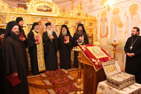 В домовом храме в честь Собора Белорусских святых ковчег встретил Митрополит Минский и Слуцкий, Патриарший Экзарх всея Беларуси Филарет. Его Высокопреосвященство поклонился частицам Честного и Животворящего Креста Господня, мощей равноапостольной Марии Магдалины и великомученицы Варвары.