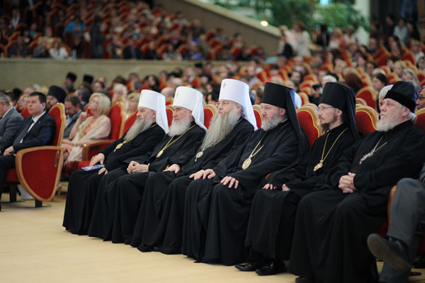 Под праздничные фанфары на сцену, где на украшенном живыми цветами аналое находилась икона святых равноапостольных Кирилла и Мефодия, были приглашены номинанты Патриаршей литературной премии 2012 года: