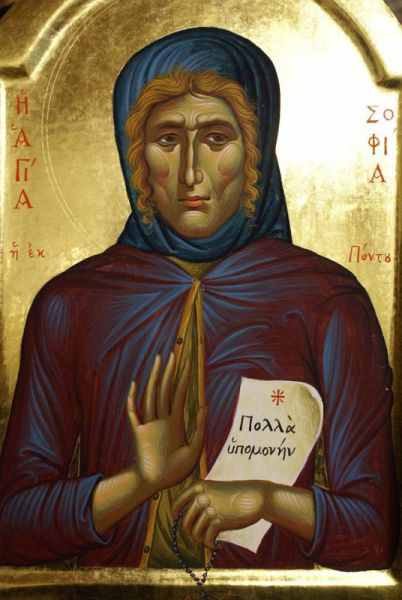 Память святой будет праздноваться 23 апреля (6 мая), в день ее блаженной кончины. Преподобная София родилась в конце ΧΙΧ века в районе Трапезунда в Османской империи в семье греков-понтийцев.