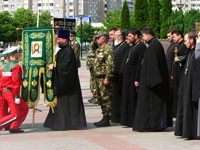 Символом военно-патриотического слета является хоругвь, которая была вручена участникам по благословению Патриаршего Экзарха всея Беларуси Митрополита Филарета.