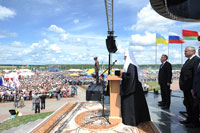 Святейший Патриарх Кирилл принял участие в открытии фестиваля «Славянское единство — 2012» на границе России, Беларуси и Украины