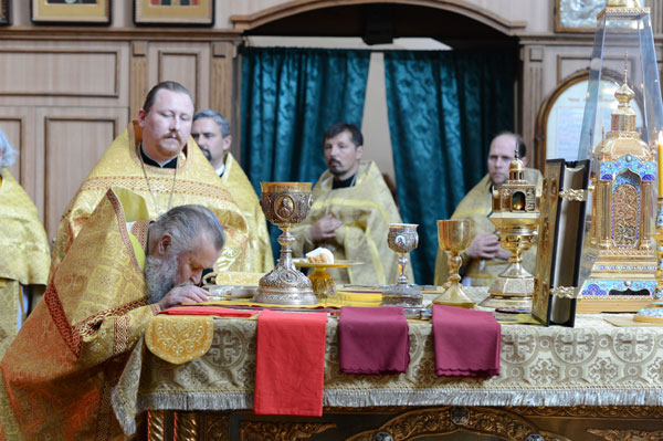 Патриарший Экзарх причастился Святых Христовых Таин.