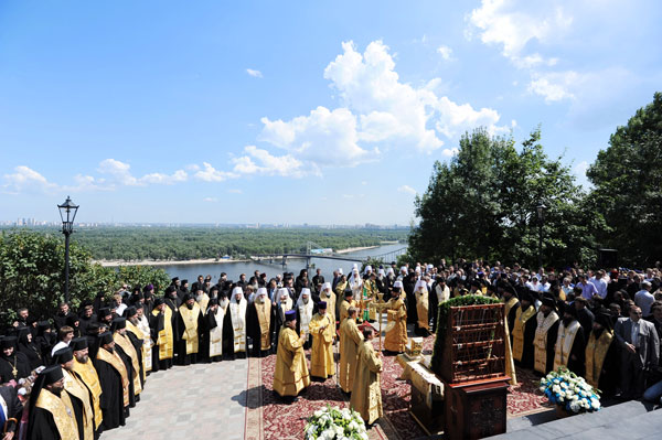 28 июля, непосредственно в день памяти святого равноапостольного великого князя Владимира и День Крещения Руси, Святейший Патриарх Московский и всея Руси Кирилл совершил Божественную литургию в Свято-Успенской Киево-Печерской лавре.
