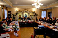 Заседание возглавили сопредседатели единого Экспертного совета, заместитель управляющего делами Московской Патриархии, член Исполнительной дирекции Координационного комитета архимандрит Савва (Тутунов) и директор Института общественного проектирования, член Совета Общественной палаты РФ В.А. Фадеев.