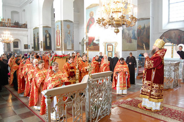Архиерей поздравил собравшихся с праздником и сказал в проповеди: «Наши святые молятся за нас пред Господом, печалятся, когда мы ослабеваем духовно, радуются нашим добрым, богоугодным делам. В их числе — наш заступник и покровитель преподобномученик Серафим.
