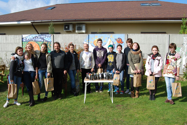 баллончики с краской. И у ребят получилось.