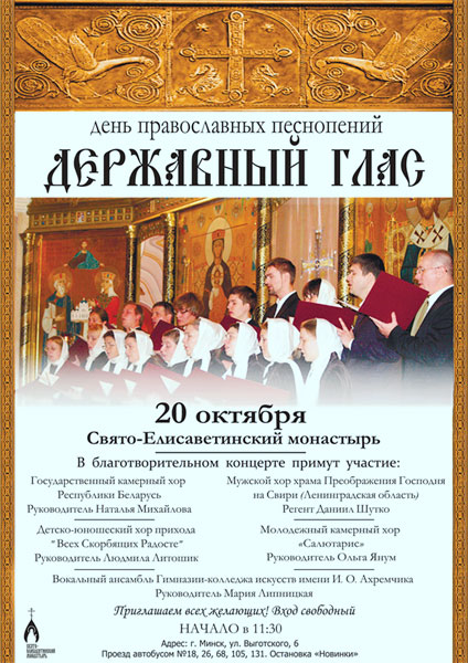 В столичном Свято-Елисаветинском монастыре пройдет очередной концерт «Державный глас»