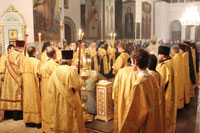 Его Высокопреосвященству сослужили духовенство монастыря, представители профессорско-преподавательской корпорации Минских духовных школ в священном сане, клирики Новогрудской епархии.