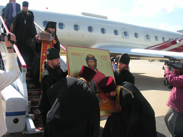 Cамолет с мощами св. князя Александра Невского приземлился