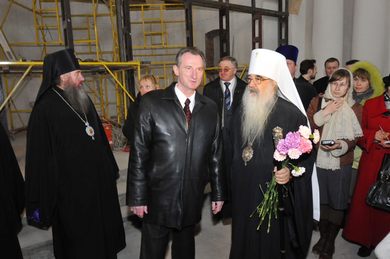 В этот же день Высокопреосвященный Владыка Филарет в сопровождении председателя Витебского облисполкома Александра Косинца осмотрел строящийся в Витебске храм в честь Воскресения Христова и встретился.