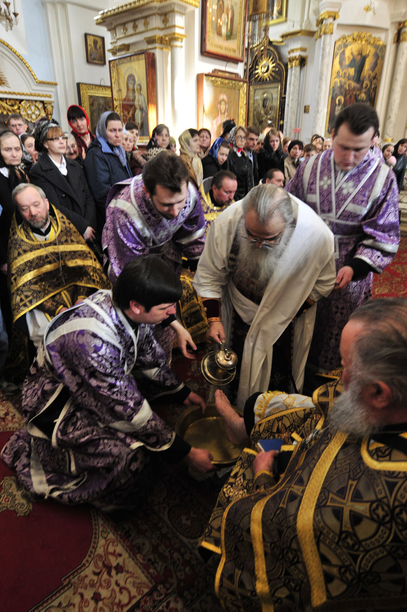 Сообразуясь с порядком чтения Евангелия, Предстоятель омывает ноги 12