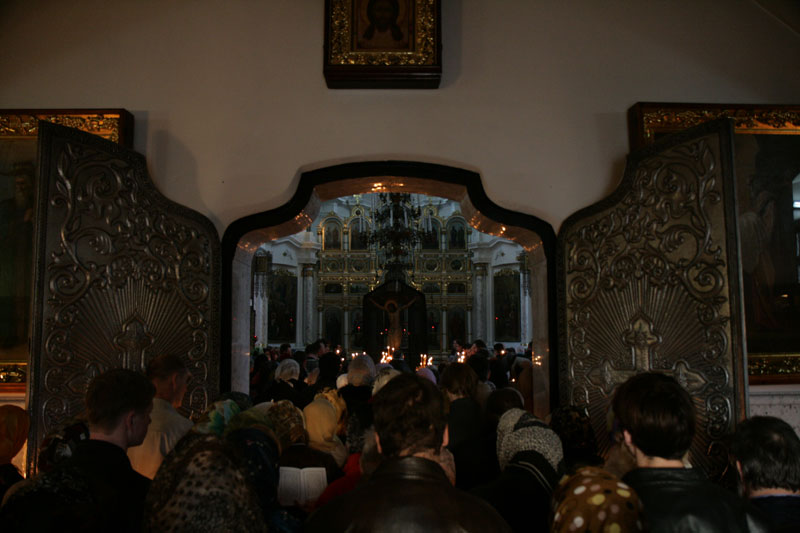 Во время чтения Евангелий положено стоять с зажженными свечами, показывая тем самым, с одной стороны, то, что слава и величие не оставили Господа и во время Его страданий, а с другой стороны - горячую любовь к своему Спасителю. Перед чтением очередного отрывка Евангелия ударяют в колокол. Число ударов колокола соответствует читаемому Евангелию.