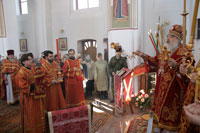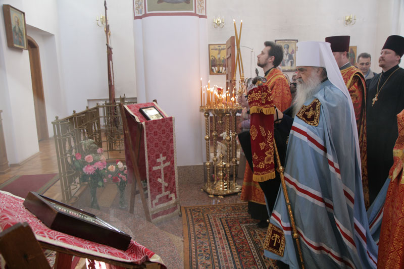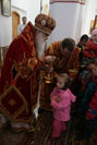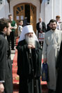 По окончании службы Владыка Экзарх поздравил клир и прихожан церкви с Пасхой Господней, их храмовым праздником, и каждого одарил пасхальным красным яйцом – древним символом Христова Воскресения.