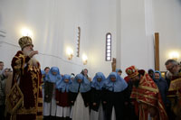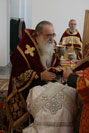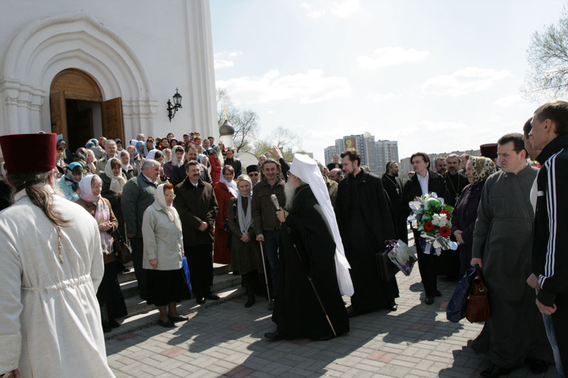 24 апреля 2009 год. Четверг Светлой седмицы. Высокопреосвященнейший Митрополит Филарет отслужил Божественную литургию в столичном храме в честь Покрова Пресвятой Богородицы.