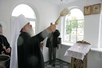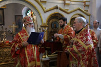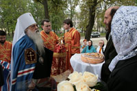 Далее Владыка Экзарх освятил часовню возле храма в честь Покрова Пресвятой Богородицы и совершил торжественную закладку капсулы в основание храма во имя вмч. Георгия Победоносца.