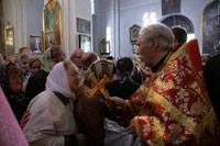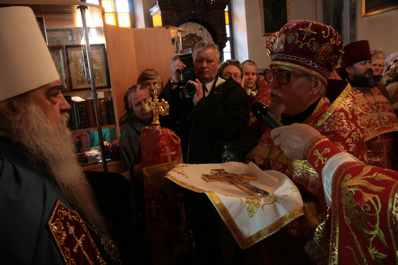 По богослужении протоиерей Александр Троцкий (благочинный Молодеченского городского благочиния) за усердные труды во славу Божию и на благо Матери-Церкви, а также в связи с 55-летней годовщиной начала служения был награжден орденом свт. Кирилла Туровского II степени.