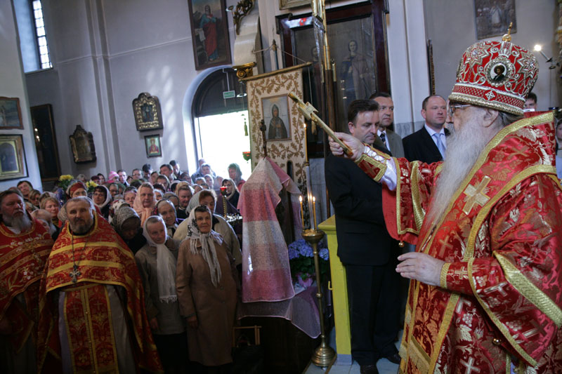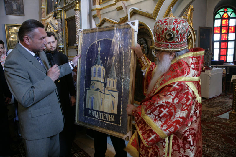 16 мая 2009 года. Память преподобного Феодосия, игумена Киево-Печерского (1074). Божественную литургию в храме в честь Покрова Пресвятой Богородицы и закладку капсулы в основание нового храма во имя святого великомученика Георгия Победоносца в г. Молодечно совершил Митрополит Минский и Слуцкий Филарет, Патриарший Экзарх всея Беларуси.