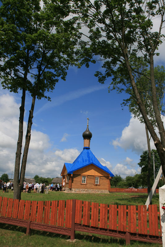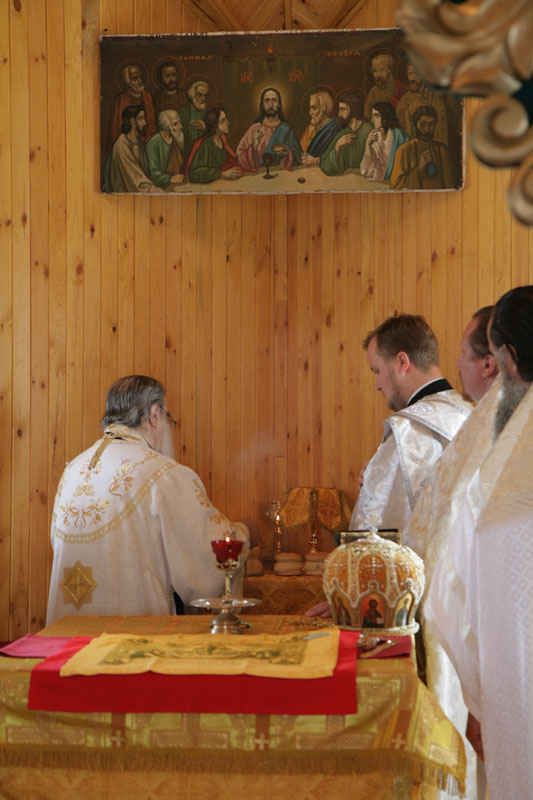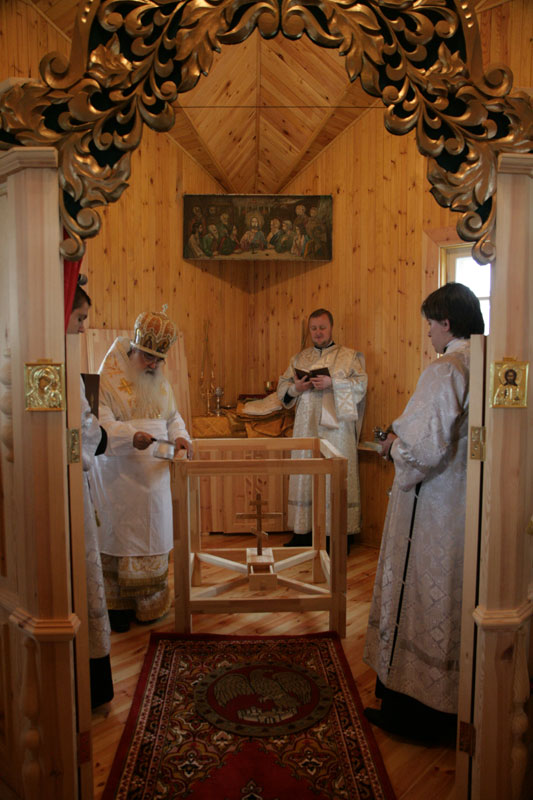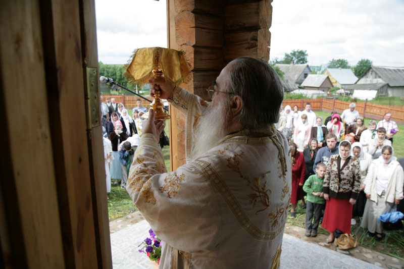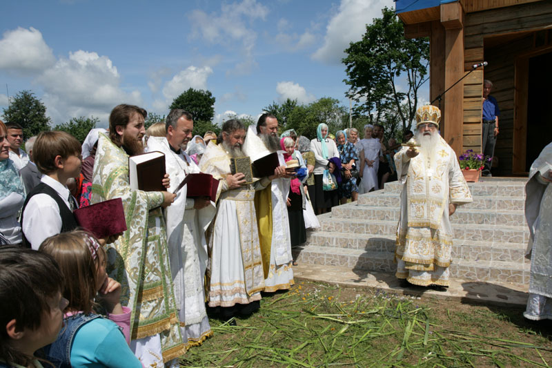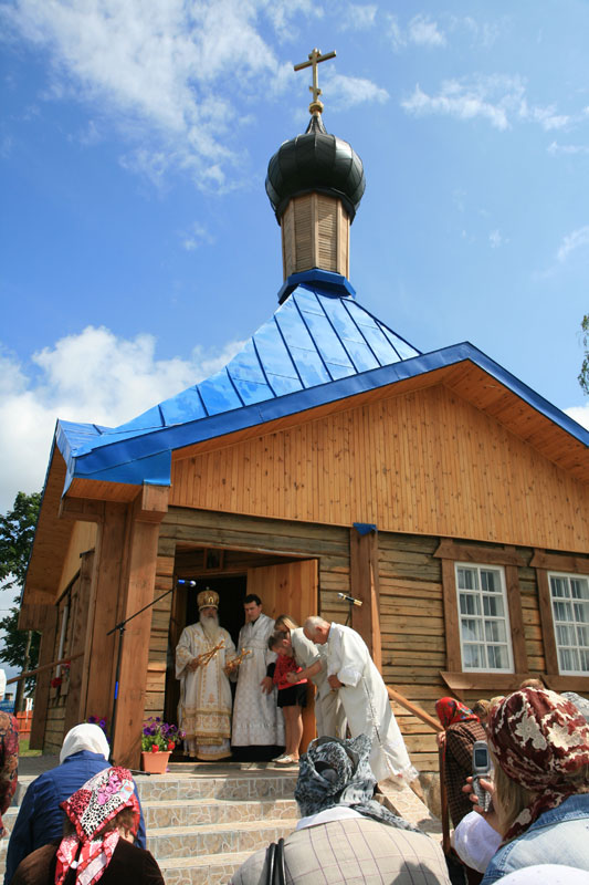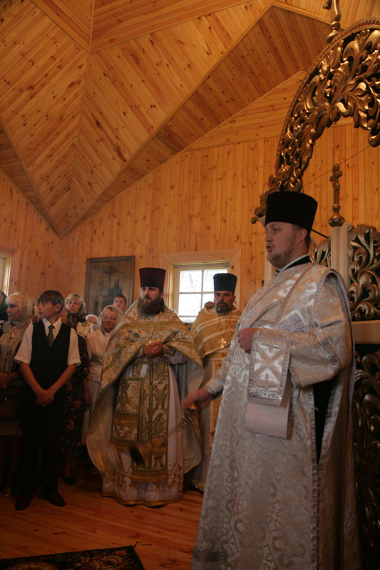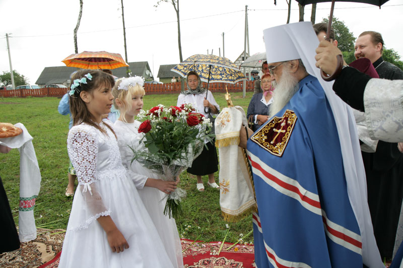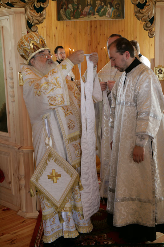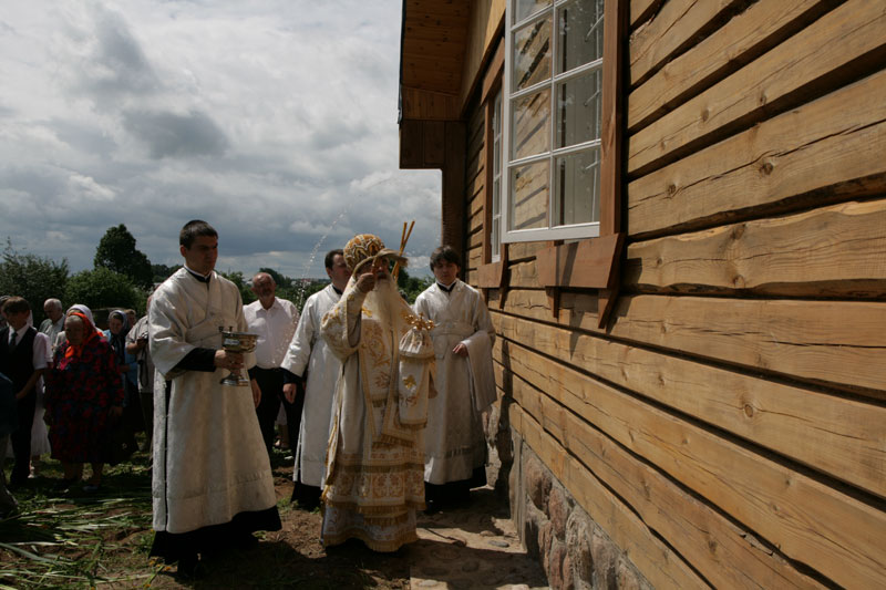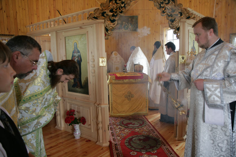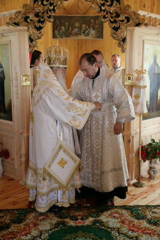 Сразу по освящении храма Патриарший Экзарх возглавил Божественную литургию в новоосвященной церкви.  Его Высокопреосвященству сослужили Секретарь Минского Епархиального управления протоиерей Николай Коржич, духовенство Мядельского благочиния.  За богослужением Владыка Экзарх рукоположил во иерея выпускника Минской духовной семинарии диакона Николая Лащенко.