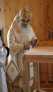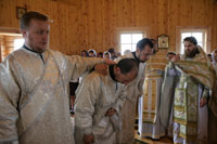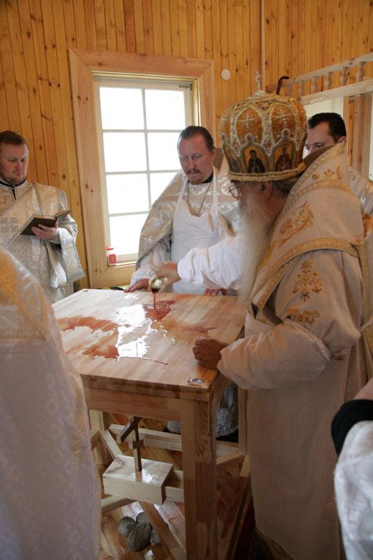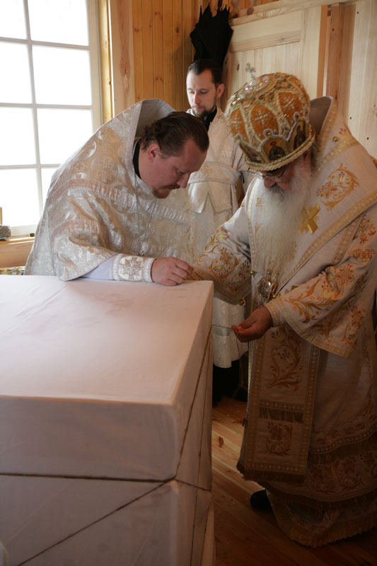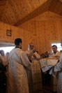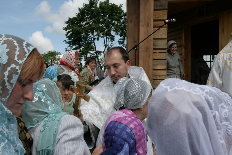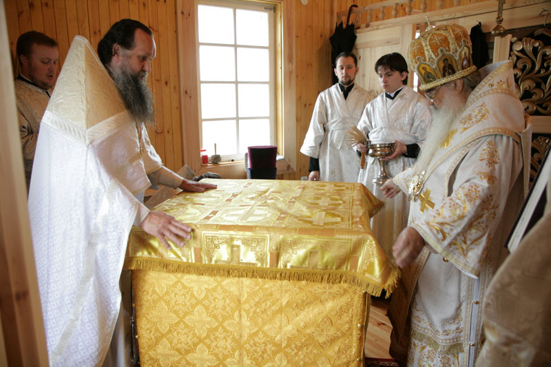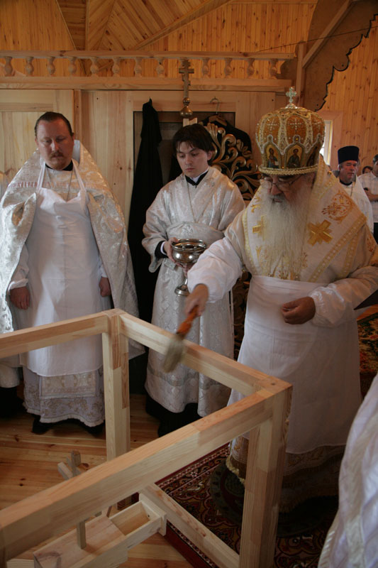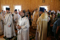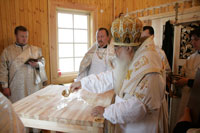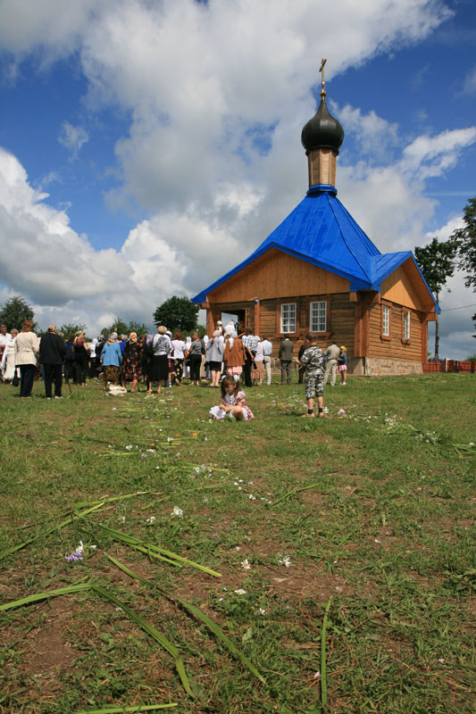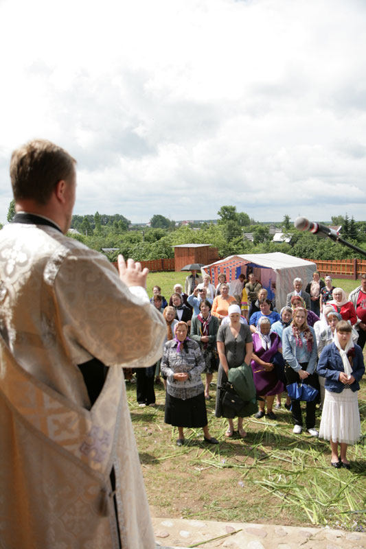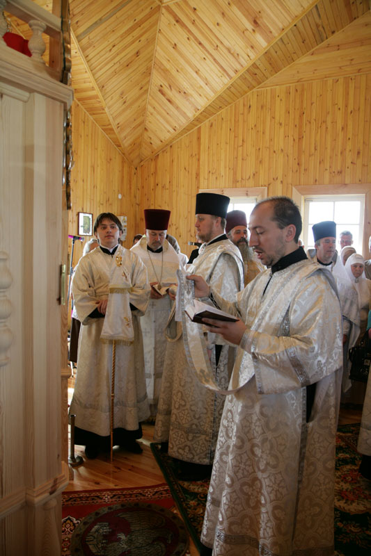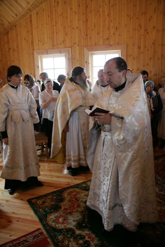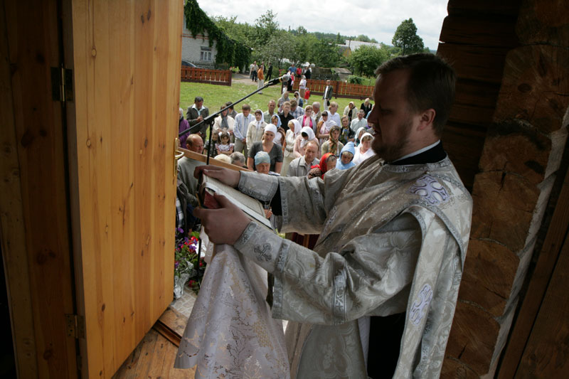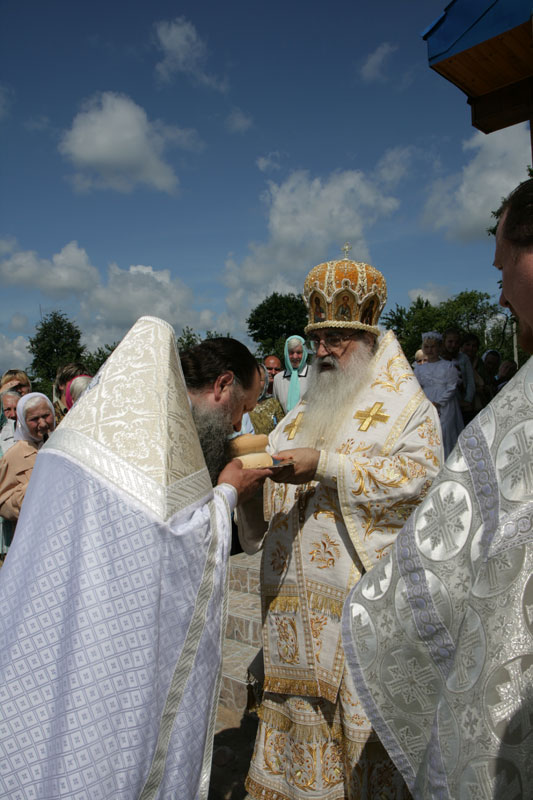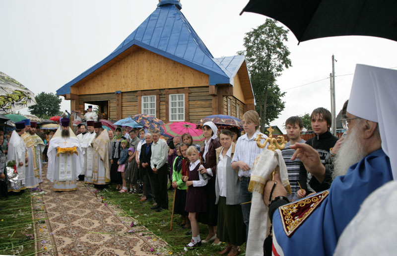 Сразу по освящении храма Патриарший Экзарх возглавил Божественную литургию в новоосвященной церкви.  Его Высокопреосвященству сослужили Секретарь Минского Епархиального управления протоиерей Николай Коржич, духовенство Мядельского благочиния.  За богослужением Владыка Экзарх рукоположил во иерея выпускника Минской духовной семинарии диакона Николая Лащенко.