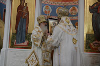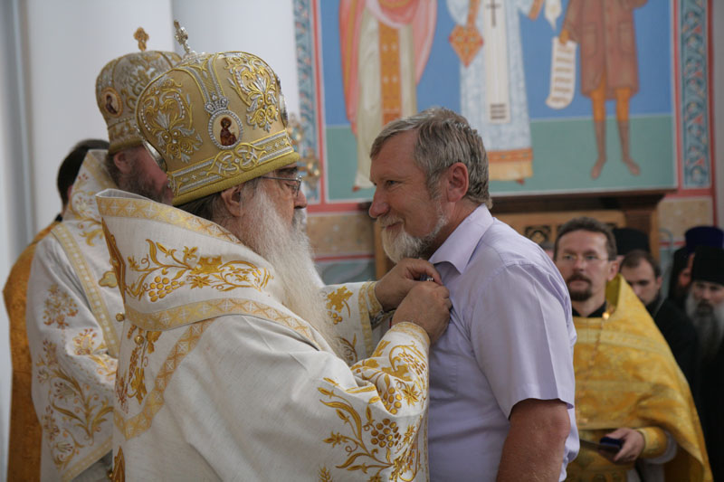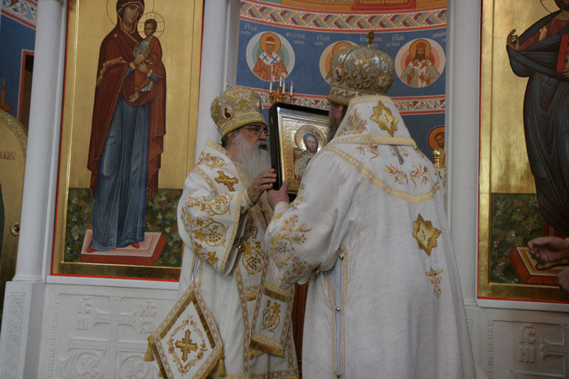 По богослужении Митрополит Филарет передал в дар новому приходу икону Христа Спасителя, а особо потрудившиеся во славу Божию и на благо Матери-Церкви были отмечены Владыкой Экзархом церковными наградами и памятными грамотами.