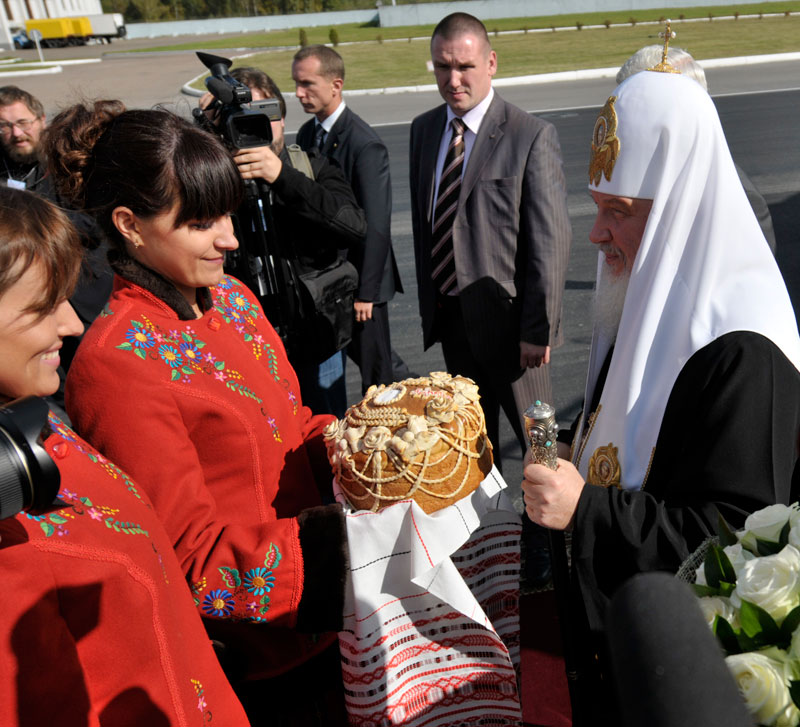 В торжественной обстановке Святейшего Патриарха встречали члены Синода Белорусской Православной Церкви во главе с Высокопреосвященным Филаретом, Митрополитом Минским и Слуцким, Патриаршим Экзархом всея Беларуси. От лица белорусского государства Его Святейшество приветствовали Заместитель Премьер-министра Республики Беларусь Владимир Николаевич Потупчик, Председатель Комитета по делам религий и национальностей при Совете Министров Республики Беларусь Леонид Павлович Гуляко. Во встрече принял участие Чрезвычайный и Полномочный Посол Российской Федерации в Республике Беларусь Александр Александрович Суриков.