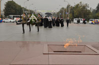 Члены делегации возложили цветы на мемориальную плиту у обелиска. В исполнении хора Национальной государственной телерадиокомпании Республики Беларусь  над Площадью Победы была вознесена «Вечная память» павшим в годы Великой Отечественной войны.