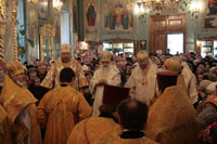 Высокопреосвященнейший Митрополит Филарет возглавил Божественную литургию в Свято-Петропавловском кафедральном соборе города Гомеля. В этом году главный храм города отмечает свой двухсотлетний юбилей со дня основания. Патриаршему Экзарху сослужили архиепископ Гомельский и Жлобинский Аристарх, епископ Туровский и Мозырский Стефан, епископ Речицкий, викарий Гомельской епархии Леонид. За богослужением в сан игуменьи была возведена монахиня Мария (Богуш).