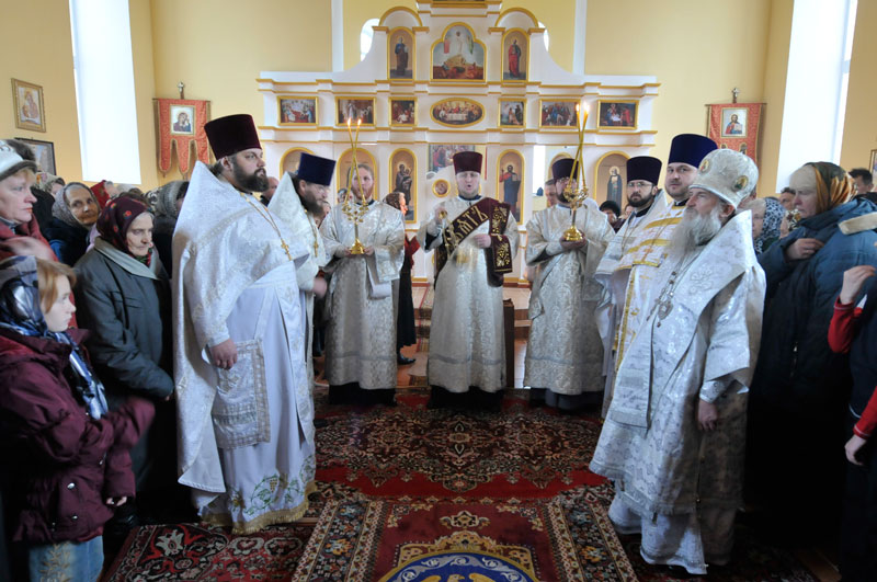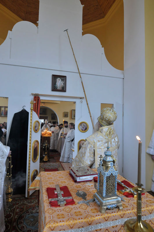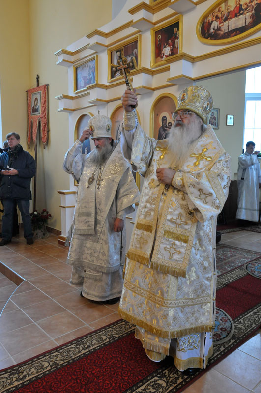 После чина освящения Патриарший Экзарх возглавил Божественную литургию в новом храме. Его Высокопреосвященству сослужил Преосвященный Софроний, епископ Могилевский и Мстиславский.