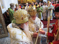И да будет сама жизнь наша проповедью о совести и чести, о христианском достоинстве и о незыблемой вере. Взирая на крестный путь патриаршего служения Вашей Святыни, молю Бога об укреплении Вашем на этой воистину страстотерпческой и исповеднической стезе. Также прошу Творца, чтобы и ныне живущие, и грядущие поколения наших соотечественников не утратили памяти о том, что лишь при наличии любви, по слову Псалтири, «истина возникнет из земли, и правда приникнет с небес» (Пс. 84: 11–12).