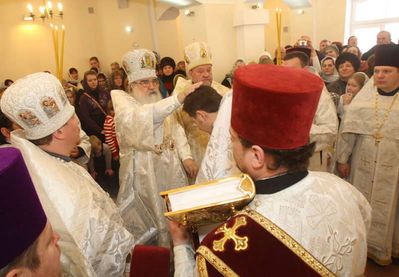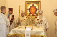 За Божественной литургией Патриаршему Экзарху сослужили Преосвященннейший епископ Гродненский и Волковысский Артемий, Секретарь Минского Епархиального управления протоиерей Николай Коржич, Секретарь Гродненского Епархиального управления протоиерей Анатолий Ненартович и духовенство Гродненской епархии. За торжественным богослужением Владыка Экзарх возвел настоятеля больничного храма иерея Александра Хомбака в сан протоиерея. В дар приходу Его Высокопреосвященство передал икону Спасителя «Моление о Чаше», а приходская библиотека пополнилась подарочным изданием Библии в кожаном переплете — даром Владыки Митрополита. Главный врач Гродненской областной клинической больницы Святослав Эдуардович Савицкий был награжден Орденом Белорусской Православной Церкви святителя Кирилла Туровского I степени.