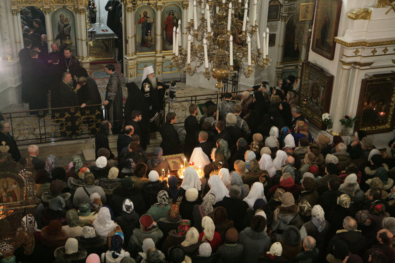 14 февраля 2010 года. Его Высокопреосвященство Митрополит Минский и Слуцкий Филарет , Патриарший Экзарх всея Беларуси совершил вечерню с Чином прощения в Минском Свято-Духовом кафедральном соборе