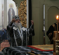Перед началом богослужения Владыка Митрополит обратился к клиру и молящимся, испросив у всех прощения и пожелав братии Божией помощи и усердия в совершении монашеского подвига, а всем молящимся здравия и крепости сил на предстоящие недели Великого поста.